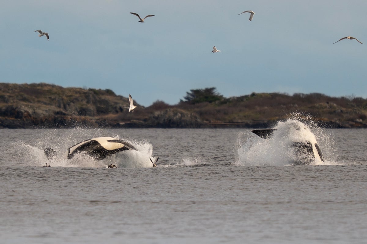A pod of hunting transient orca put on a show near Moorecroft Park in Nanoose on Sunday, Jan. 4, 2026. Photo by Mick Sweetman / The Discourse.