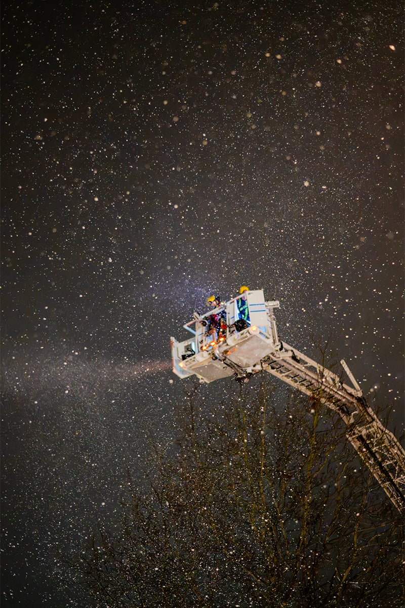 Nanaimo firefighters make snow at the Downtown Nanaimo Winterfest on Thursday, Dec. 4. Photo by Mick Sweetman / The Discourse.