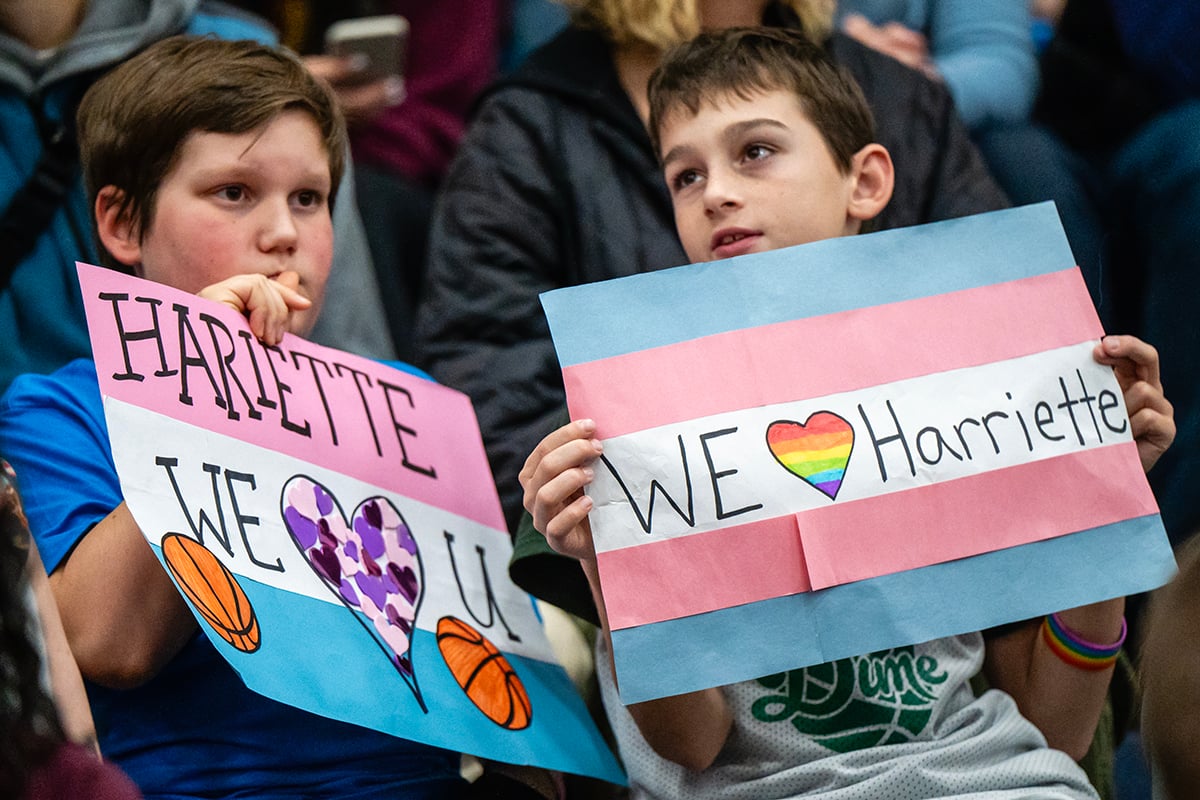 People filled the stands at a recent VIU women’s basketball game in support of trans athlete Harriette Mackenzie.