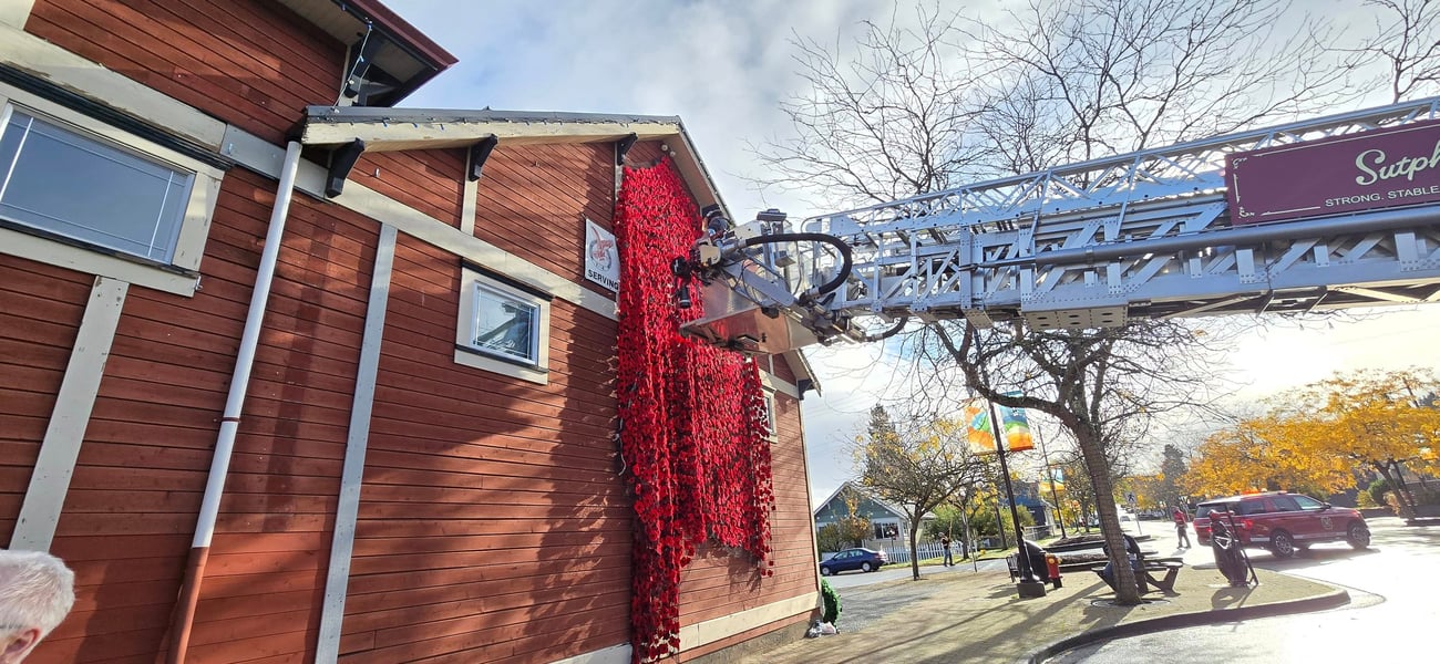 The Eagles Hall in Ladysmith received a display of 2,000 crocheted poppies to honor Canadian troops for Remembrance Day. Photo courtesy of Kerrie Vockeroth.